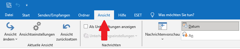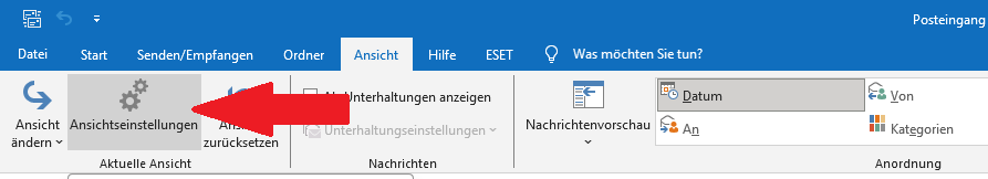 - Wählen Sie folgend unter der Befehlsgruppe „Aktuelle Ansicht“ den Button „Ansichtseinstellungen“.