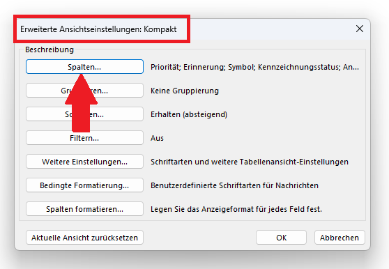 - In diesem wählen Sie den Button „Spalten…“.