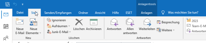 - Folgend wählen Sie unter der Befehlsgruppe „Neu“ „Neue E-Mail“ aus.